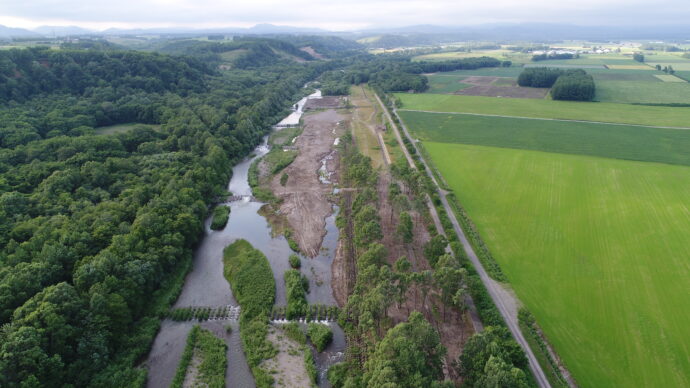 増水時に川の流れをスムーズにするため、阻害原因となりやすい河畔林の部分撤去や